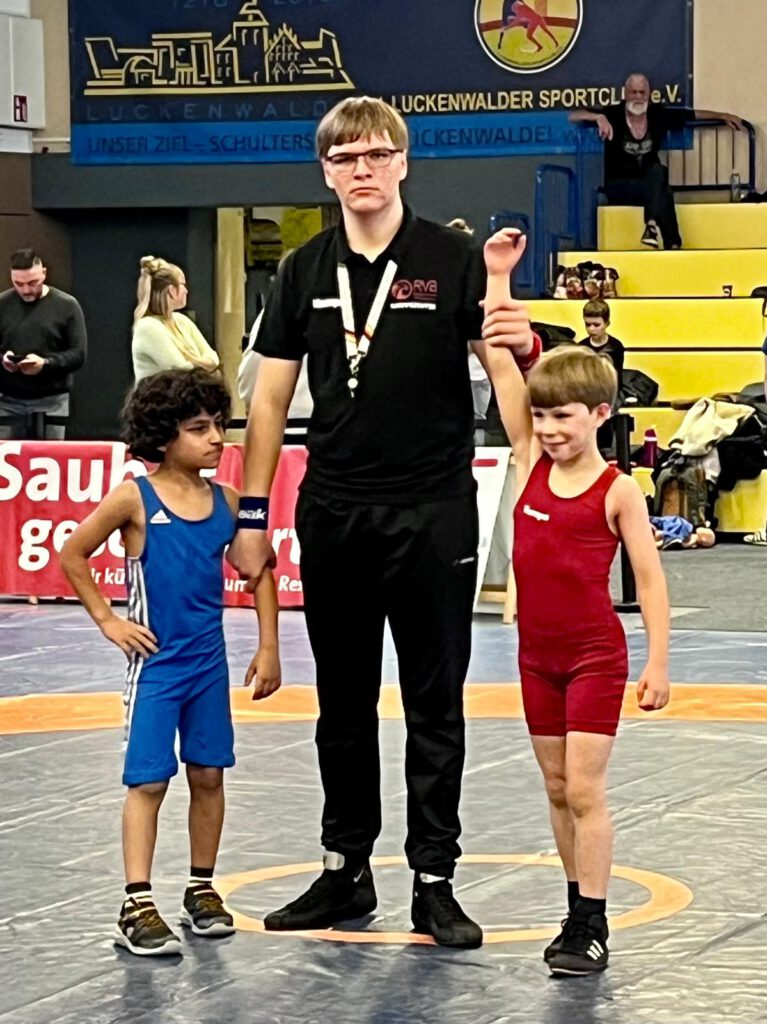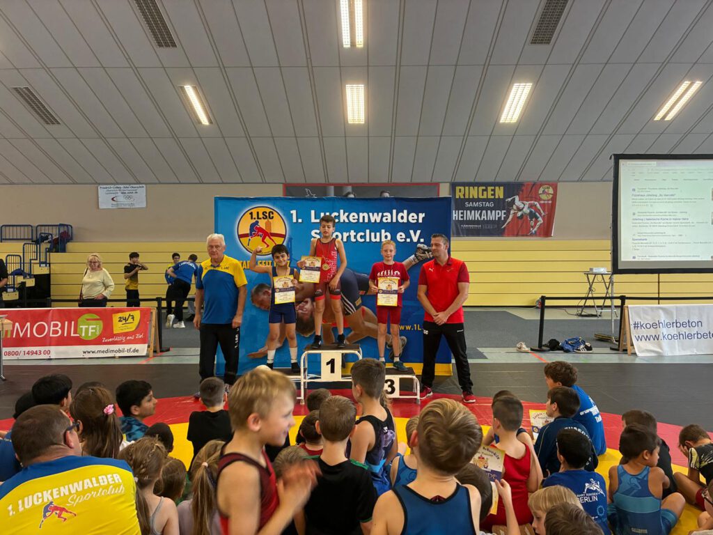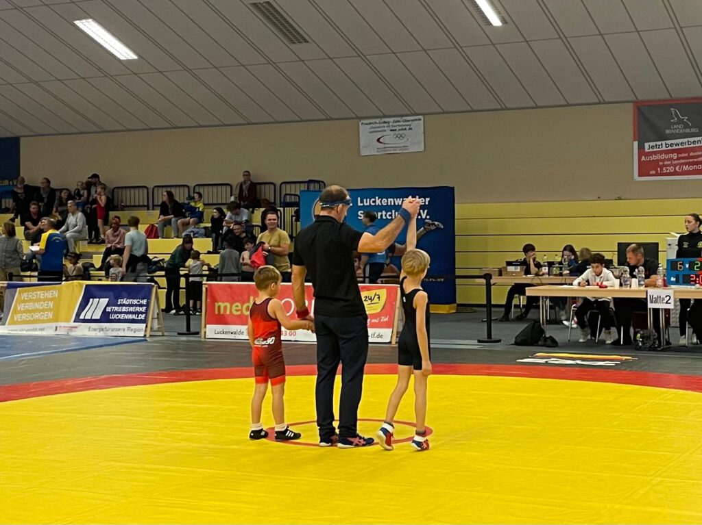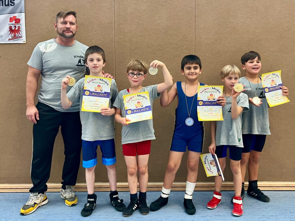 Am 11.10.2025 fand in Luckenwalde das 15. Luckis-Muckis-Krümelturnier statt. Dieses Anfängerturnier wurde dieses Jahr sehr stark besucht und somit gingen 121 Anfänger aus 13 Vereinen auf 3 Matten an den Start. Die Preußennachwuchsringer waren mit 5 Sportlern vertreten und es kamen alle unter die besten zwei. Mit 3 x Gold und 2 x Silber haben sich unsere Nachwuchsringer sehr gut geschlagen. Es hatten alle Jungs genug Kämpfe und somit wurden wieder wichtige Erfahrungen für die Zukunft gesammelt. Herzlichen Glückwunsch für dieses Ergebnis von der gesamten Abteilung Ringen des SV Preußen Berlin.