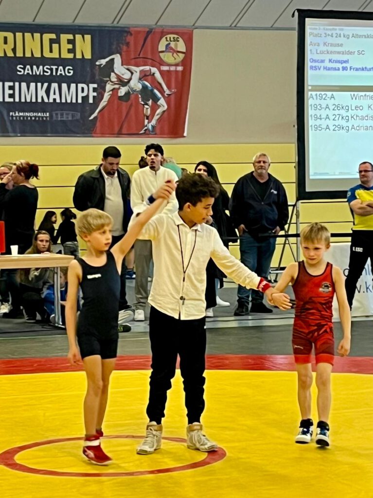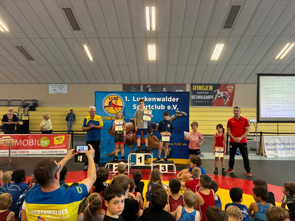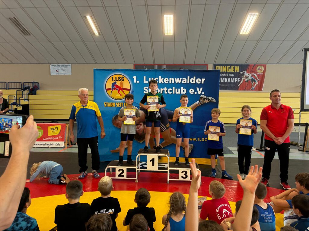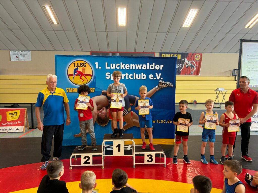 Am 11.10.2025 fand in Luckenwalde das 15. Luckis-Muckis-Krümelturnier statt. Dieses Anfängerturnier wurde dieses Jahr sehr stark besucht und somit gingen 121 Anfänger aus 13 Vereinen auf 3 Matten an den Start. Die Preußennachwuchsringer waren mit 5 Sportlern vertreten und es kamen alle unter die besten zwei. Mit 3 x Gold und 2 x Silber haben sich unsere Nachwuchsringer sehr gut geschlagen. Es hatten alle Jungs genug Kämpfe und somit wurden wieder wichtige Erfahrungen für die Zukunft gesammelt. Herzlichen Glückwunsch für dieses Ergebnis von der gesamten Abteilung Ringen des SV Preußen Berlin.