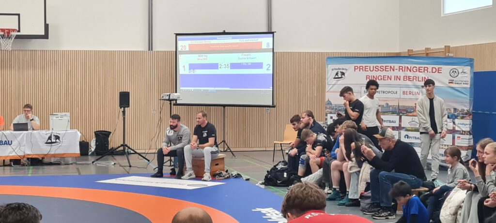 Anschließend griffen unsere Preussen-Ringer ins Geschehen ein. Gegen TUS Hellersdorf zeigten unsere Ringer eine starke Teamleistung und holten sich mit 24:8 Punkten einen überzeugenden Sieg. Im zweiten Duell gegen den RSV Hansa 90 Frankfurt/Oder mussten sich die Preußen jedoch trotz großem Kampfgeist mit 10:22 geschlagen geben.