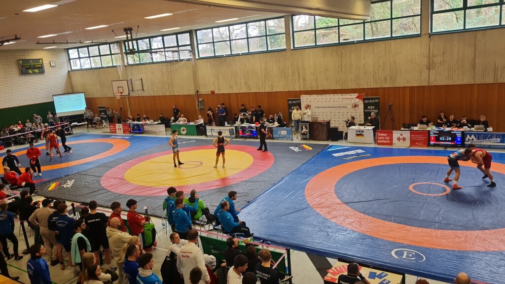 Am 24.01.2026 fand in Hagen (NRW) ein vom Deutschen Ringerbund ausgetragenes Kadersichtungsturnier der U17 statt. Dieses Turnier ist eines von 3 Turnieren, inklusive der Deutschen Meisterschaft, wo die Nachwuchsbundestrainer aller Stilarten sich für den Kader der U17 Europameisterschaft entscheiden. Demzufolge waren nur die Besten Nachwuchsringer Deutschlands zu diesem Turnier gemeldet. Auf drei Matten gingen 209 Athleten aus 103 Vereinen im männlichen (Freistil und Greco) und weiblichen Bereich an den Start. Die Berliner Delegation war mit 12 Sportlern und den zwei Landestrainern Hr. Gaul ( weibl. ) und Hr. Schönwälder ( männl. ) vertreten. Sieben Preußenringer und Ringerinnen waren Mitglied dieser Delegation. In der Vereinswertung aller 99 Vereine Deutschlands errang der SV Preußen den 7. Platz. Mit 1 x Gold durch den aktuellen Berliner Meister Eymen Cobanoglu ( 92 Kg ) und 2 x Bronze durch Levke Peter ( 57 Kg ) und Johanne Kunze ( 65 Kg ) wurde der SV Preußen bei diesem Wettkampf würdig vertreten. Aufgrund des verlängerten Zeitplans dieser Veranstaltung, wurden die Medaillen während des laufenden Wettkampfes von den Bundestrainern persönlich überreicht. Herzlichen Glückwunsch von der gesamten Abteilung Ringen des SV Preußen Berlin zu dieser Leistung.