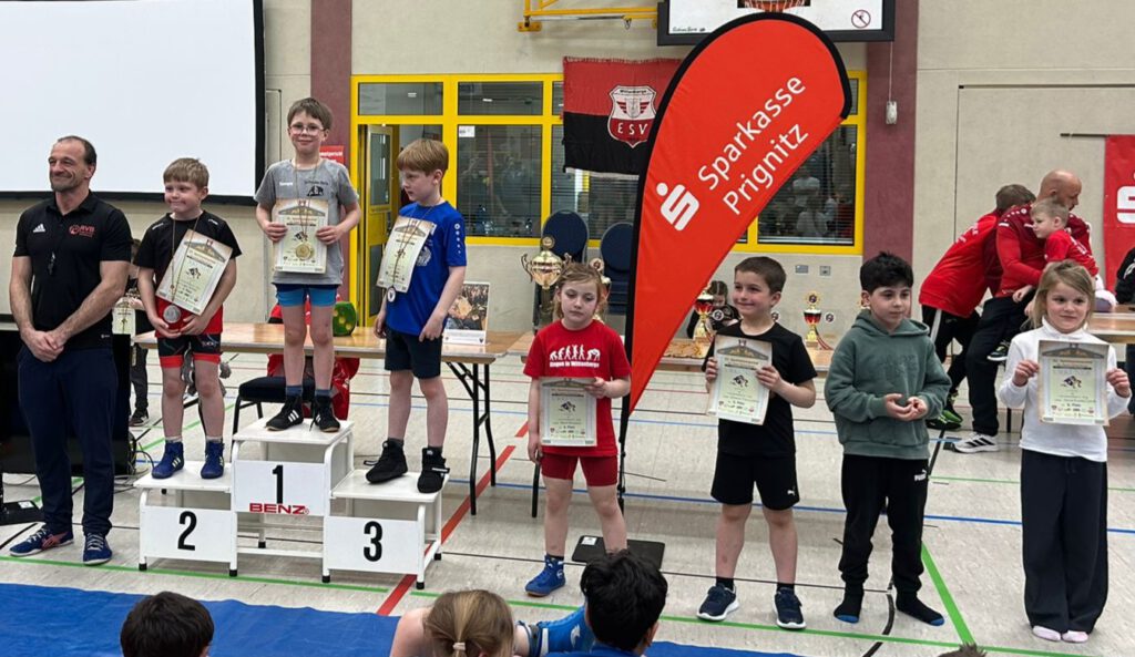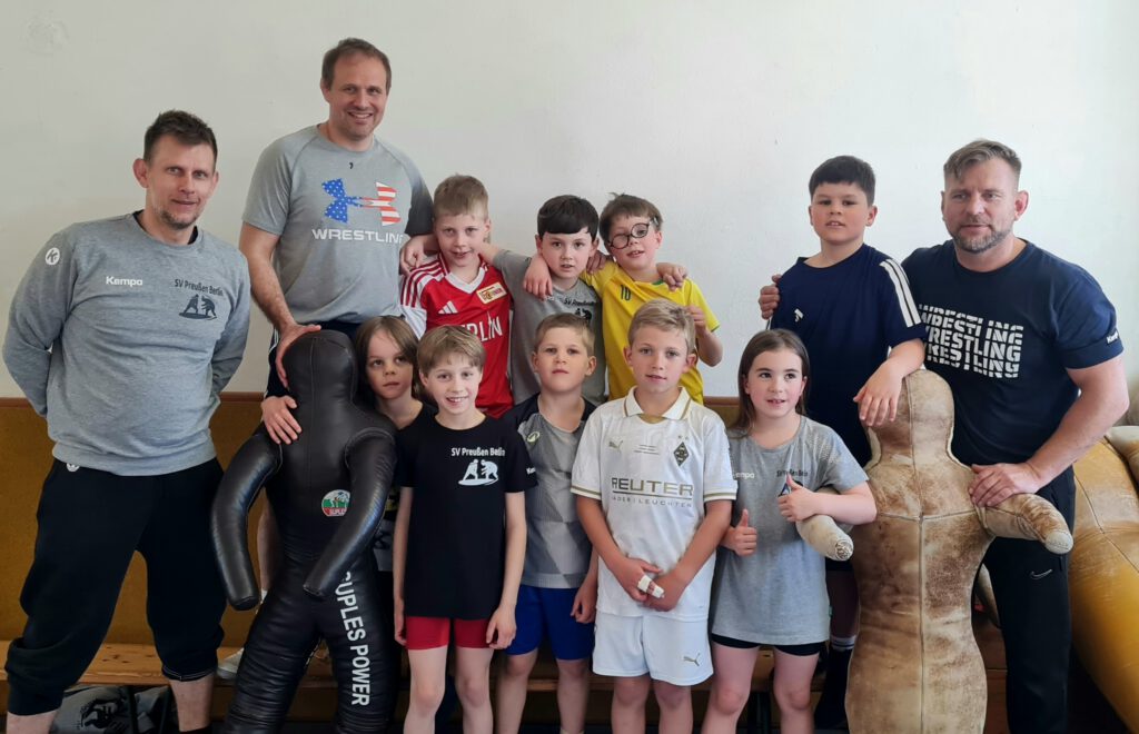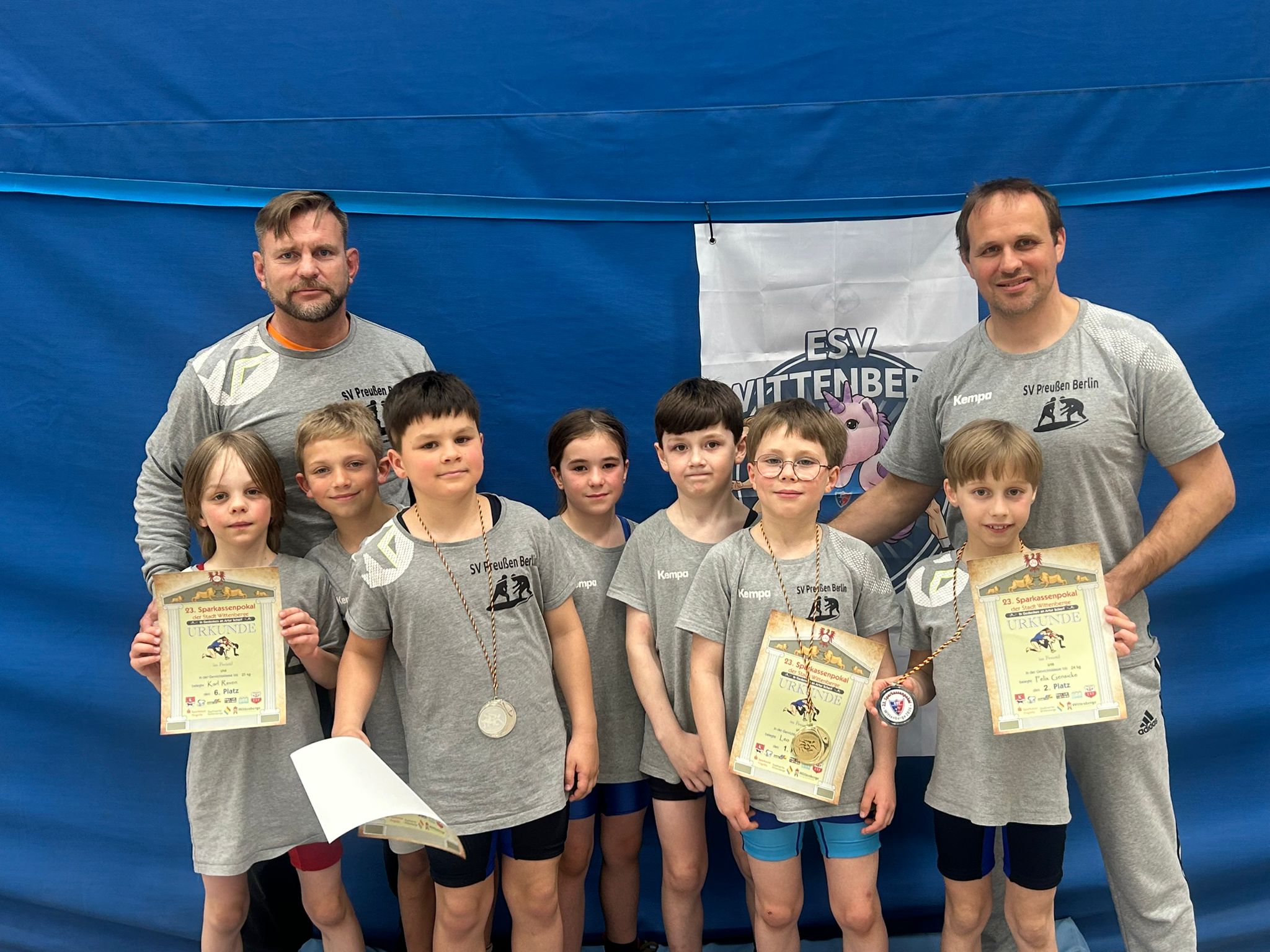 In der 2. Woche der Osterferien vom 08.04.-10.04. war eine kleine Trainingsgruppe der U8 und U10 Jungs vom SV Preußen erst im Trainingslager in Eisenhüttenstadt, um von dort aus zum 23. Sparkassenpokal nach Wittenberge zu fahren. In der Jugendherberge Bremsdorfer Mühle fanden wir sehr gute Bedingungen vor und die Trainingsstätte vom Eisenhüttenstädter Ringerclub wurde uns auch zur Verfügung gestellt. Mit 4 Matteneinheiten und einer aktiven Erholungseinheit im Inselbad Eisenhüttenstadt, wurde das Grundgerüst für zukünftige Trainingslager der jungen Nachwuchsringer gelegt. Der Schwerpunkt dieser Tage lag auf das Teambuilding und Techniktraining. Am Freitag dem 10.04. konnten wir mit den Sportfreunden vom Eisenhüttenstädter Ringerclub sogar eine gemeinsame Trainingseinheit absolvieren. Wir möchten uns ganz herzlich für die Gastfreundschaft der Eisenhüttenstädter bedanken. Nach der letzten Einheit ging es dann Richtung Wittenberge, wo wir auch herzlich empfangen wurden. An dieser Stelle auch ein großes Dankeschön an den ESV Wittenberge. Am Sonnabend dem 11.04. war es dann soweit. 148 Teilnehmer aus 14 Vereinen waren zum 23. Sparkassenpokal nach Wittenberge gereist. Der SV Preußen ging mit 6 Sportlern an den Start. Mit 1 x Gold und 2 x Silber war das Ergebnis zufriedenstellend und vor allem hatten wir in diesen Tagen sehr viel Spaß. Herzlichen Glückwunsch von der gesamten Abteilung Ringen des SV Preußen Berlin.